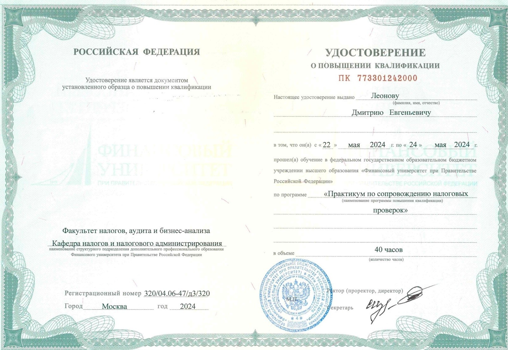 Аттестованный Профессиональный налоговый консультант (7-го уровня квалификации). Членский билет N 7781958